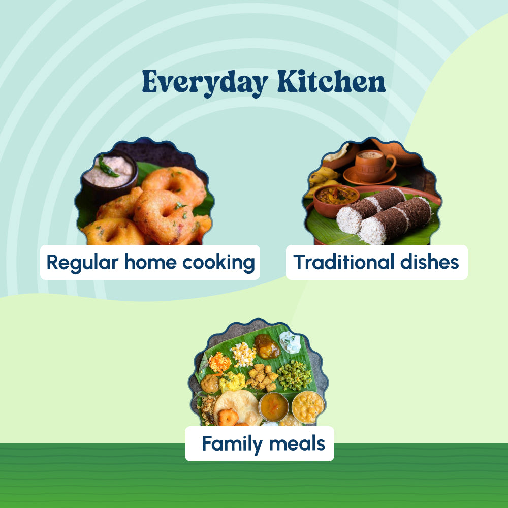 Regai Cold Pressed Groundnut Oil is extracted from carefully selected groundnuts using traditional wooden cold-press methods. This slow process reflects the long-standing practice of preparing pure cooking oils in Tamil households. Clean, natural, and thoughtfully made, this oil is suited for everyday family cooking for those who value honest ingredients and traditional kitchen practices.