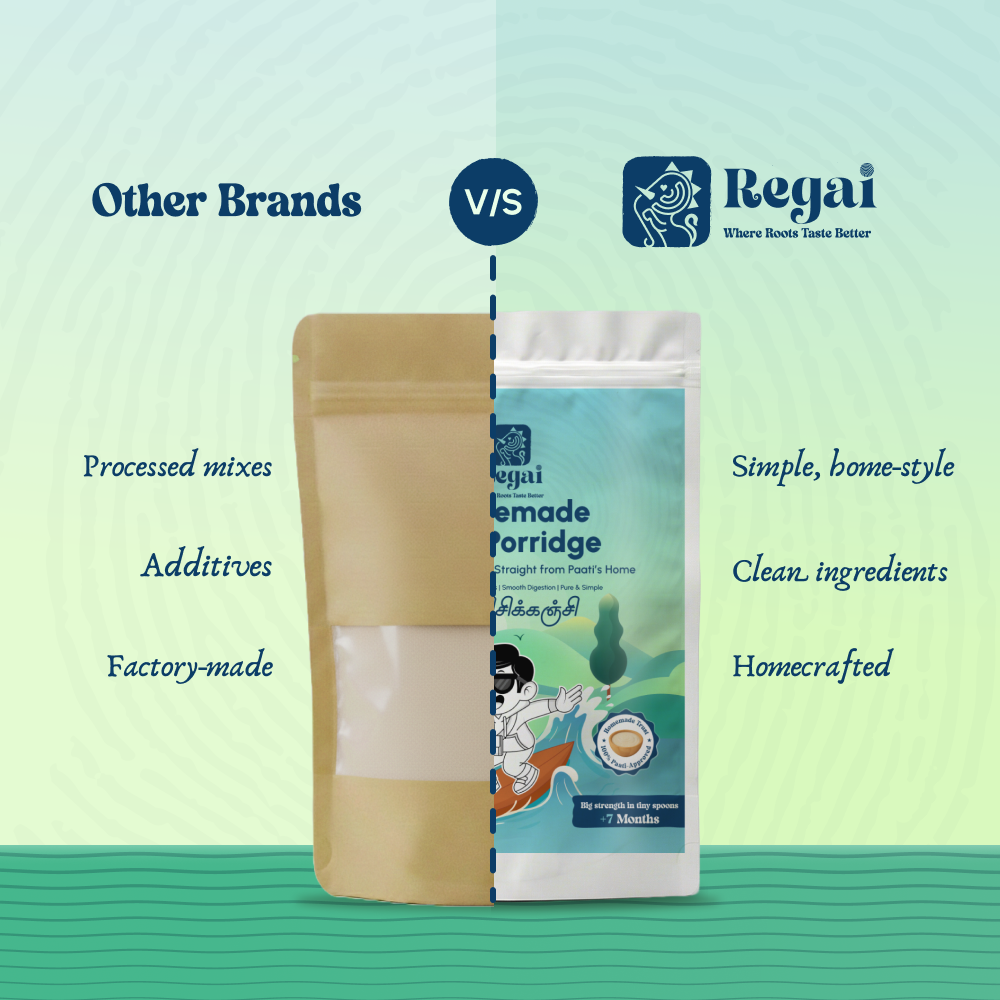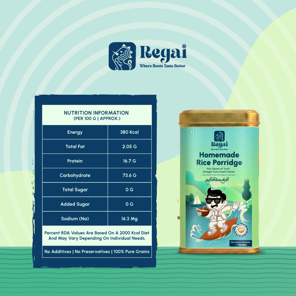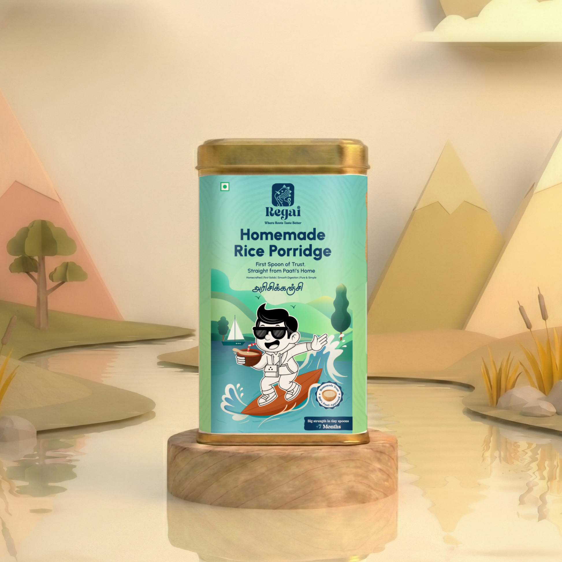 Made from carefully selected ingredients and prepared using traditional methods with modern safety standards. This homemade rice porridge is traditionally prepared in Tamil households as an early solid food option, valued for its simplicity and gentle texture. Clean, honest, and thoughtfully made, it suits babies beginning solid foods and families who prefer simple, comforting meals.